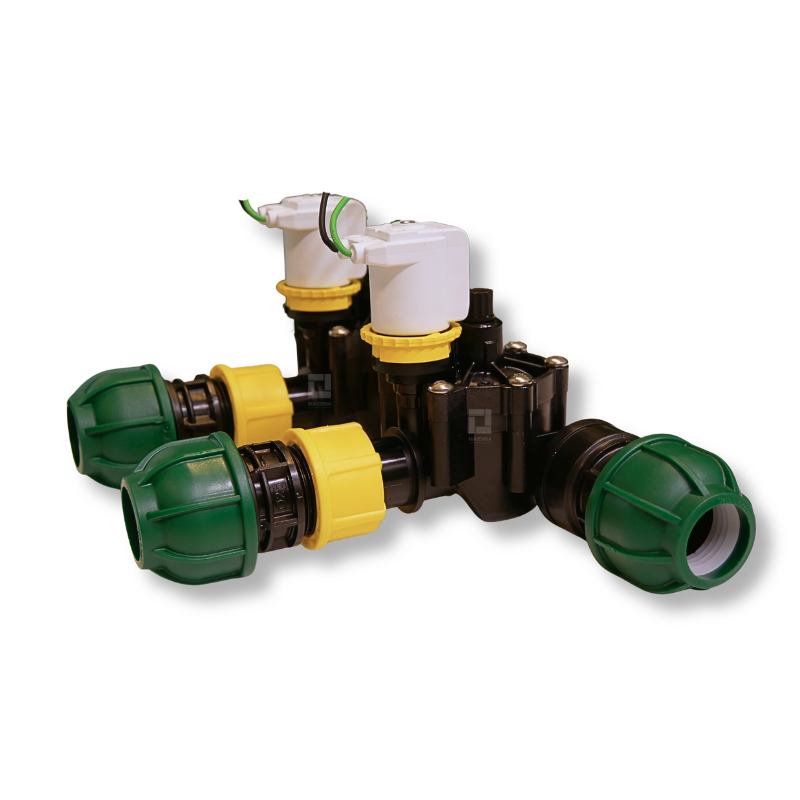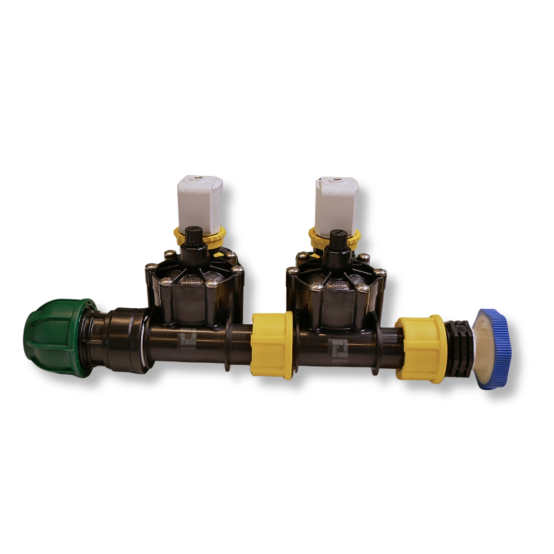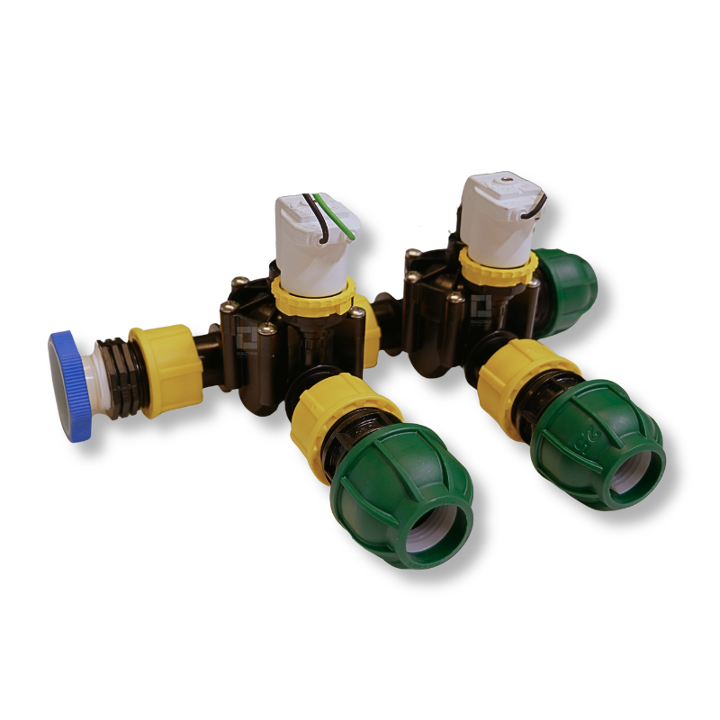 - Komplektą sudaro: 2 vnt RPE SW DC elektromagnetiniai vožtuvai, redukcija drenažui, drenažinis vožtuvas ¾".