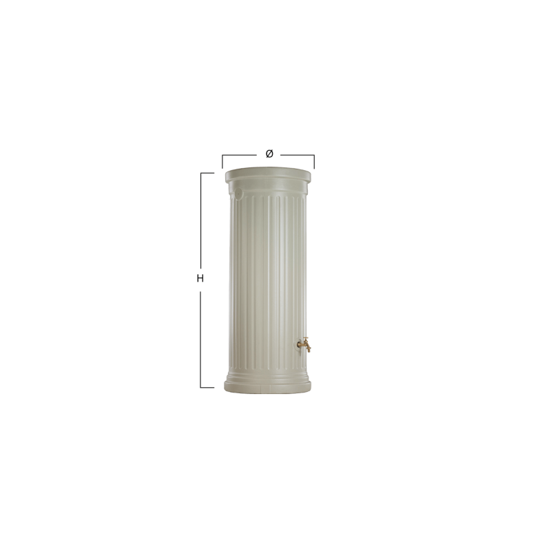 Lietaus vandens talpa KOLONA - tai ne tik praktiškas, bet ir estetiškas sprendimas jūsų lauko erdvei. Minimalistinis dizainas bei švelni smėlio spalva leidžia talpai natūraliai įsilieti į įvairią aplinką - nuo miesto kiemelio iki šiuolaikiško sodo.