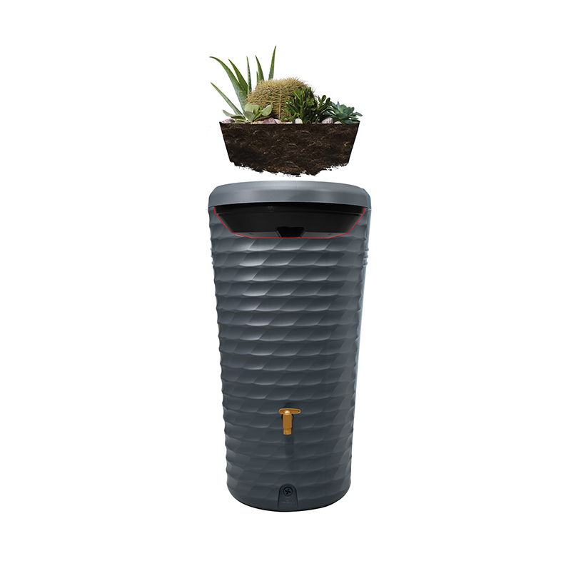 Jolie 2in1 lietaus vandens talpa - funkcionalus ir stilingas sprendimas jūsų sodui, kiemui ar terasai. Vandens talpa jungia lietaus vandens kaupimą ir dekoratyvinę augalų zoną viršuje, kuri ne tik taupo vietą, bet ir puošia aplinką. Nuimamas augalų padėklas suteikia papildomo patogumo - lengviau sodinti, prižiūrėti ar keisti augalus, taip pat paprasčiau išvalyti talpos vidų.