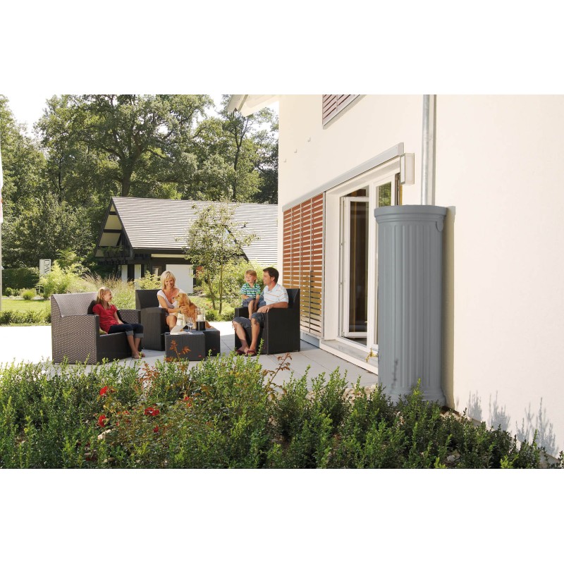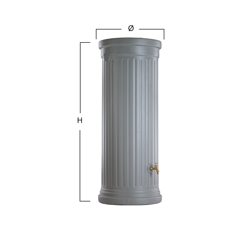 Dekoratyvinė vandens talpa KOLONA akmens pilkos spalvos - išsiskiria dizainu ir itin stabilia konstrukcija, todėl puikiai tinka tiek sodui, tiek kiemui. Dėl standartinės 3/4" sriegio jungties čiaupą galima lengvai pritvirtinti be gręžimo - tai leidžia greitai ir patogiai pradėti naudotis talpa. Komplektacijoje rasite įvado tarpinę DN 19/32, dvi aukštos kokybės integruotas žalvarinės srieginės jungtis bei augalų apsauginis audinys.