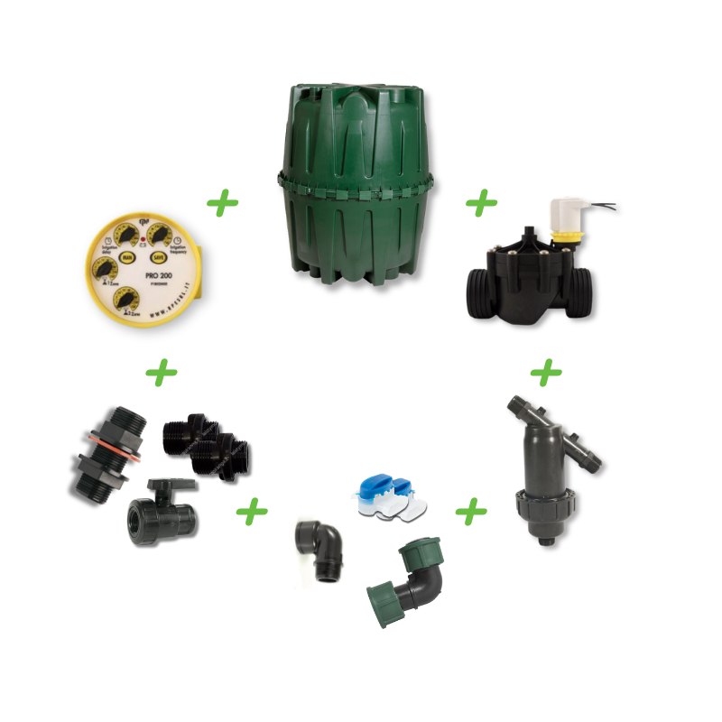 Gravitacinis laistymo rinkinys HERKULES – tai išbaigtas, profesionalus sprendimas tiems, kurie nori automatizuoti laistymą be elektros tinklo ir be brangių montavimo darbų. Skirtingai nuo standartinių IBC konteinerių sistemų, šis rinkinys komplektuojamas kartu su 1600 litrų HERKULES rezervuaru – tai reiškia, kad gavę komplektą turite viską, ko reikia sistemai nedelsiant įrengti. Nereikia ieškoti atskirų dalių, tikrinti suderinamumo ar gaišti laiką derinant skirtingus elementus.