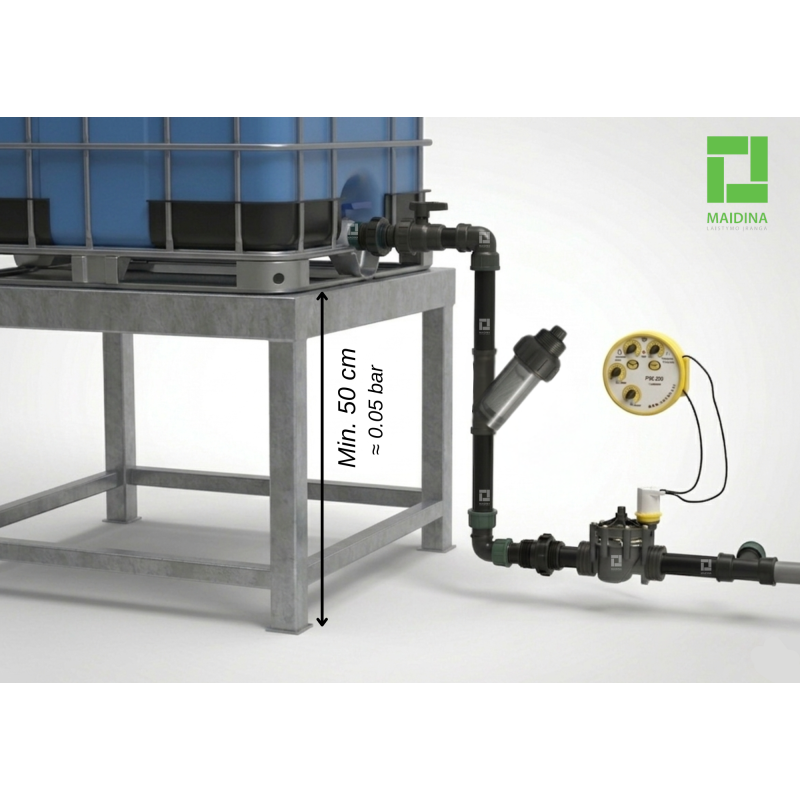 Svarbu:IBC talpa į komplektą neįeina. Vožtuvui valdyti būtina naudoti DC PRO200 valdiklį, įeinantį į šį komplektą.