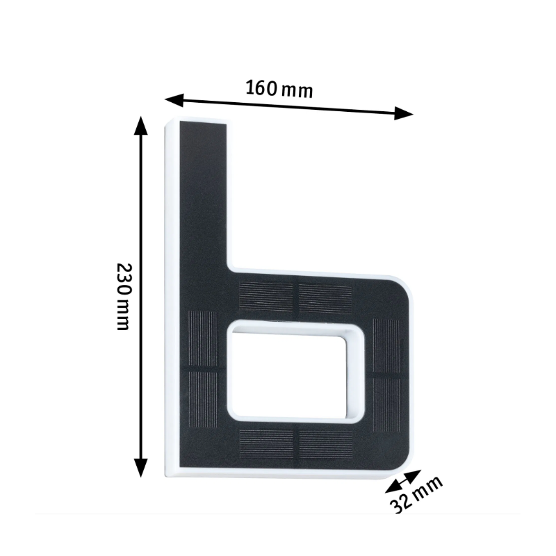 - Matmenys (aukštis x plotis x gylis): A: 230 x P: 160 x G: 32 mm