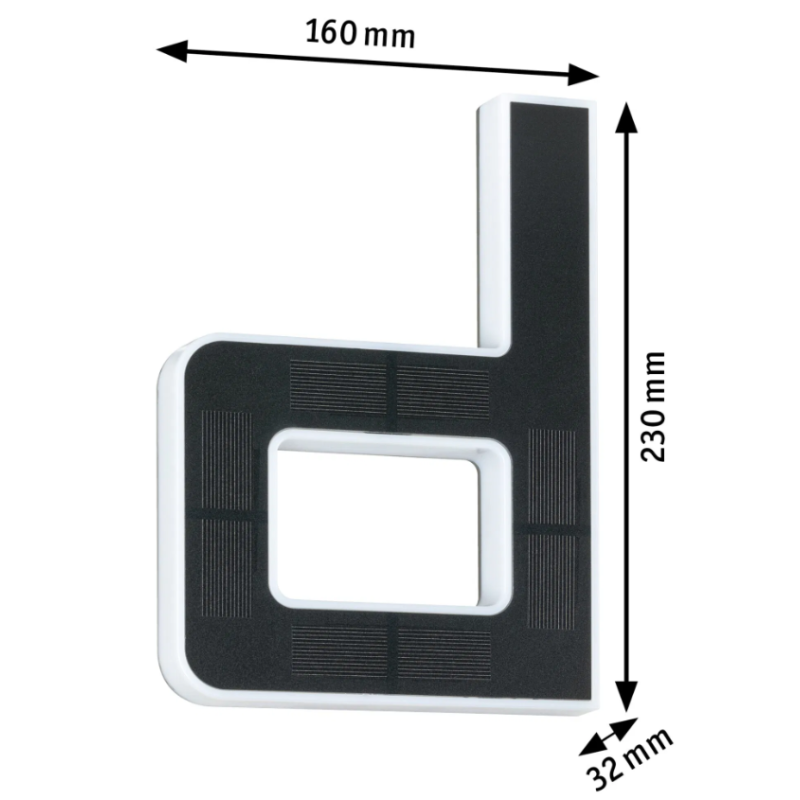 - Matmenys (aukštis x plotis x gylis): A: 230 x P: 160 x G: 32 mm