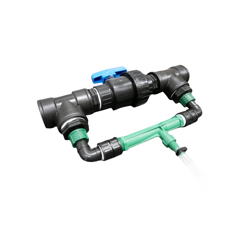 - Kai vanduo teka per mazgą, dėl srauto formos susidaro vakuumas - tai leidžia automatiškai pasiurbti trąšų tirpalą iš rezervuaro ir tiekti pasiurbtas trąšas į laistymo sistemą.