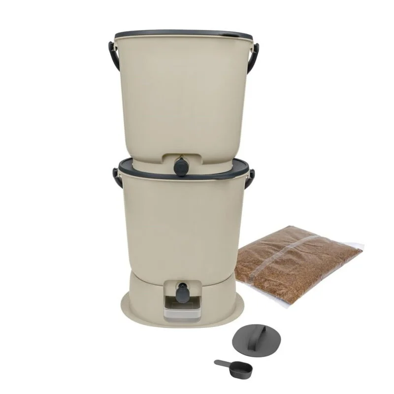 Virtuvinis komposteris Bokashi Organko Essential (2 x 15,3 l) – tai modernus ir ekologiškas sprendimas virtuvės atliekų perdirbimui namuose. Komposteris veikia Bokashi fermentacijos principu: į atliekas beriamos specialios granulės su naudingomis mikroorganizmų kultūromis, kurios pagreitina irimo procesą ir neutralizuoja nemalonius kvapus. Skirtingai nuo tradicinio kompostavimo, Bokashi metodas leidžia kompostuoti visas organines atliekas, įskaitant mėsą, žuvį, pieno produktus ir gamintą maistą.